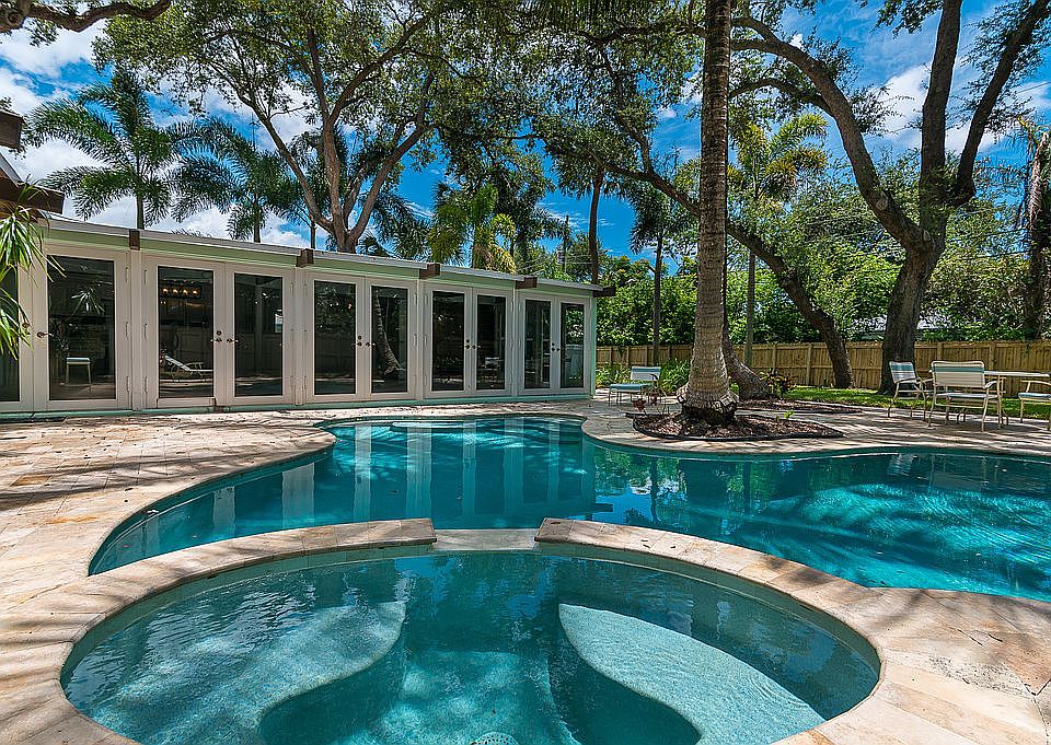 FURNISHED. Seasonal (7250) or Annual (5800). Prime location in East Boca close to Mizner Park & Beaches. Gorgeous Private Tropical Oasis, 10,000 square ft lot! Massive Salt Water Heated Pool & Jacuzzi with Outdoor TV. Adorned by Over 15 Palm Trees & Oaks. Completely Fenced in Yard. Remodeled Farmhouse Kitchen with Granite Counters & Stainless Appliances. 75" TV in Living Room. Very Quiet/Safe Neighborhood. Addison Mizner & Boca High "A" School District. Deck is Completely Paved around Entire Yard through Front of House. Playground is Brand New in Backyard. Brand New Security Camera System & Combination Locked Gates. Entire Side and Back of House are French Doors (Hurricane rated with 3 locks per door) for Panoramic Views of the Sunshine, Pool & Palm Trees. Robot vacuum and mopping robot included. Smart home with Alexas included. Located East of I-95, just 5 Minutes to Beaches and a few miles from Mizner Park. Master Bedroom: King Size Bed, 2 Nightstands, Dresser/Mirror, 75" TV 2nd Bedroom: Option to Choose Bunkbed (twin over full) or Queen Size Bed, Dresser/Mirror and Wardrobe Chest, Desk/Chair Formal Dining Area: Seating for 6 plus room for 8 Kitchen dining area: marble table and chairs, seating for 4 Living Room: Brand New Sectional Sofa, 75" Smart TV Kitchen: Custom Solid Wood Cabinets, Granite Countertops, Bar Island with Bench, Stainless Steel Appliances (pots, pans, silverware, coffee pot; etc- all included). Laundry: Full Size Washer and Dryer plus Storage Cabinets. Home Office Area Setup with Desk/Chair Gym: Outdoor Squat rack Olympic weight Set under Covered Overhang. Playground: One month old, full size playground with fort. Lease includes: Weekly lawn care Weekly pool care Bi-weekly cleaning services High Speed Wi-Fi Smart TV Connection Security Camera System