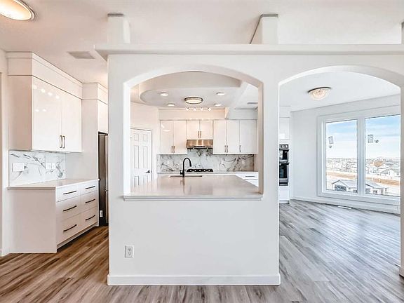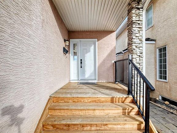 Welcome to this beautifully maintained 4-bedroom family home tucked away in one of NW Calgary’s most sought-after estate communities — The Hamptons! This immaculate, poly-B–free two-storey home with a fully finished walkout basement offers 4 bedrooms and 4 bathrooms, providing over 2,500 sq ft of living space for the whole family. The open-concept main floor features neutral tones, abundant natural light, and central air conditioning for year-round comfort. The main level boasts a spacious living area, a bright kitchen with a large nook, and direct access to the back deck — perfect for entertaining or relaxing outdoors. Upstairs, you’ll find a generous bonus room complete with a built-in wall unit, gas fireplace, and wet bar, along with three bedrooms, including a primary suite with a walk-in closet and a luxurious 5-piece ensuite featuring a separate shower and a large jetted tub. The fully finished walkout basement adds even more living space, offering a family room, a fourth bedroom, a full bathroom, and ample storage. Recent updates include: Triple-pane windows (May 2025, over $30k investment), new carpet (Nov 2025), new hot water tank (Nov 2025), new furnace (2024), new gutter replaced (2024), rear deck glass railing (2023), upgraded kitchen (2022). With quick access to Stoney Trail, you’re just minutes from the highway to the mountains, CrossIron Mills, and the airport. Located steps from parks, tennis courts, walking paths, and close to top-rated schools, shopping, and amenities, this home truly has it all!