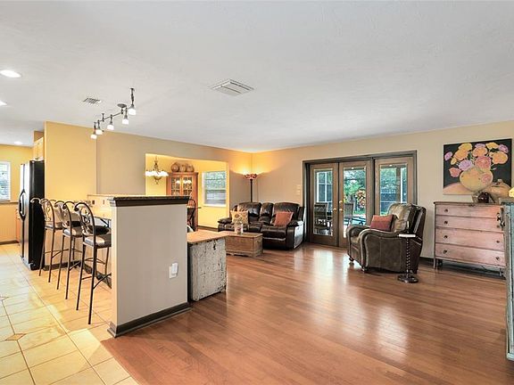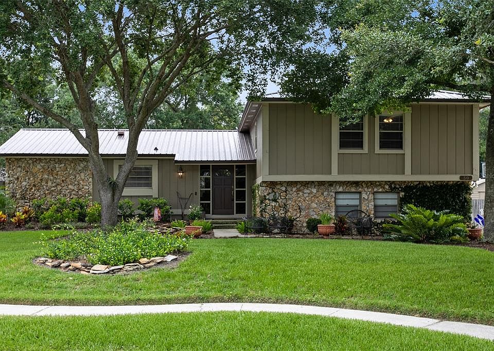 Coziness meets trendy with this charming, updated 4 bedroom 2 bath tri-level pool home on 1/3 acre lot in sought after Tuscawilla. From the minute you drive up you will be enamored by the amazing curb appeal featuring a metal roof, beautiful trees and lush landscaping. Once inside, the wide open great room/ kitchen space will win your heart. The kitchen features updated cabinetry and miles of granite including a spacious bar overlooking the living room that opens to the spacious covered porch and huge screened pool. Up a wooden staircase with iron banister you will find 3 large guest rooms, an updated guest bathroom and a spacious master suite with stylish new bathroom that features a large walk in shower, free standing soaking tub with ship lap backdrop and a custom made vanity. In addition, a bottom level media room/family room and adjacent bath is perfect for teens to hang out with their friends. Rest easy with 2 year old metal roof, 5 year old high efficiency AC, new pool pump and new electrical panel boxes. Out back, a spacious back yard offers room for an RV or boat and features a large shed for tinkering or storage. The location is superb on a quiet culdesac from where you can walk to parks, convenience store and Dominicks Restaurant. Jump on your golf cart and head to the Tuscawilla Country Club. Or .just stay home and enjoy this wonderful home!