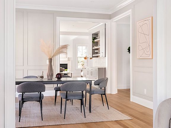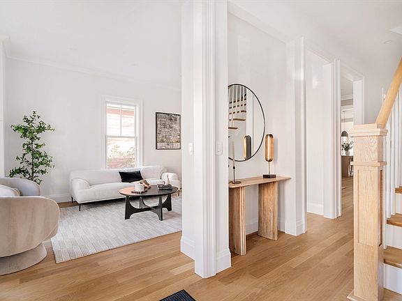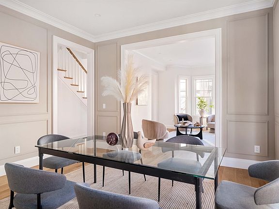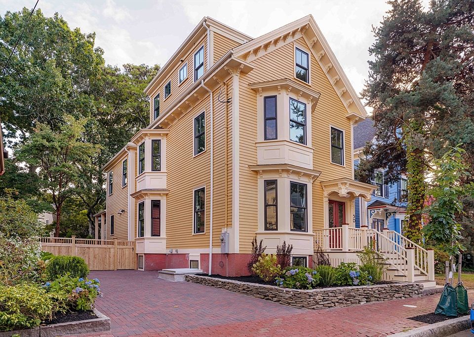 Nestled on a coveted street between Harvard and Porter Squares, this beautifully rebuilt 1886 Victorian home with landscaped gardens, seamlessly blends historic grandeur with modern elegance. Featuring soaring 10' ceilings and white oak floors, the impressive formal living and dining rooms with intricate millwork flow effortlessly into a more casual back wing that opens to the backyard. The chef's kitchen, a harmonious blend of soft grey and white oak cabinetry, serves as the heart of the home with its expansive quartzite-topped island and buffet setup. The main living area spans approximately 60'. The second floor offers a generous suite with a dressing room and stunning 4-piece bathroom, along with two bedrooms and a built-in laundry room. The upper level includes two more bedrooms. The lower level is perfect for recreation, with a family, game, or media room complete with a wet bar, an exercise studio, and a guest bedroom and bath. Every detail reflects meticulous craftsmanship!