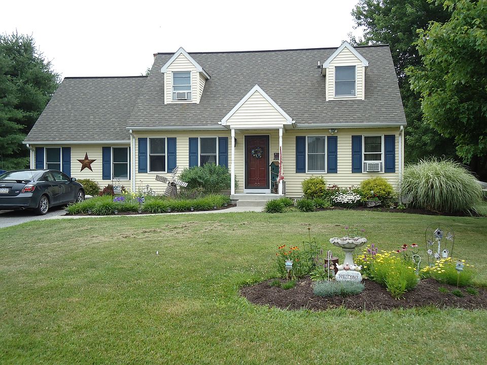 Charming well maintained Cape Cod nestled on a 1 +/- beautifully landscaped acre level lot. Enter through the fiberglass front door into the foyer/living room area with Berber carpet and open beam ceilings. The gorgeous kitchen was totally replaced in 2005 with Custom Amish Oak Cabinetry with Center Island, double sink, built-in Microwave, appliance garage and wood floors. The dining room also has wood floors and open beam ceiling and is located just off of the kitchen area. Roomy first floor master bedroom with a large walk-in closet and vaulted ceiling. Master bathroom has wood cabinetry, jetted tub with tile surround and wanes coating. Two additional bedrooms and bath on the 2nd floor and a finished basement for added living area. Take a look at the pictures and you will see the Quality this home has to offer. Be sure to schedule an appointment for your clients today. They will not be disappointed.