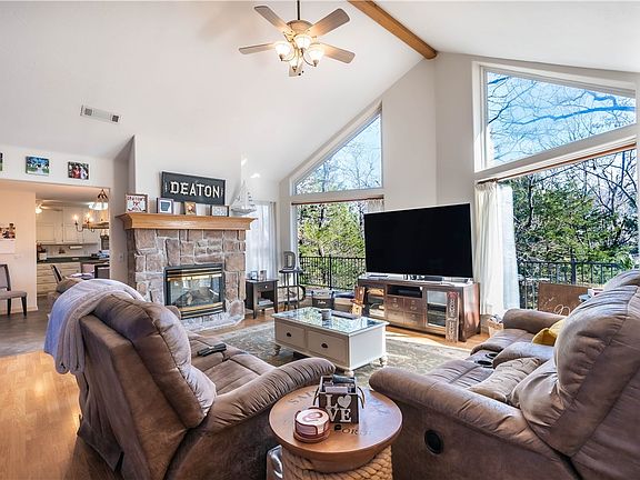 This beautiful house on a spacious lot is located on one of the most desirable streets in Holiday Island. The main level is on the upper floor providing an excellent private view. The vaulted ceiling and large windows with sliding glass doors from the dining room and primary bedroom offer great access to the newly remodeled spacious deck. The large open areas both upstairs and down offer limitless possibilities for family gatherings or entertaining. Circular drive and driveway to back of the house parking offer easy access to the house as well as a large parking area. The lower level with a bedroom and full bath along with a full living area offer private space for those overnight guests. The 2 newer heat/air systems with main floor being dual fuel provide great flexibility and year-round comfort. Storage and hobby rooms complete serve only to complete this functional floor plan.