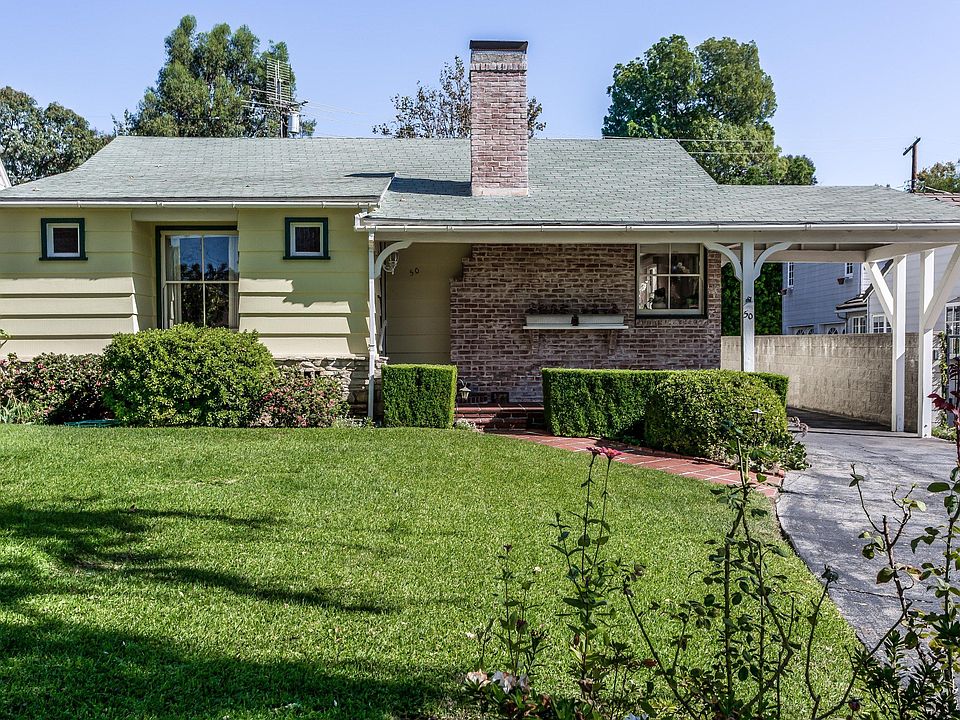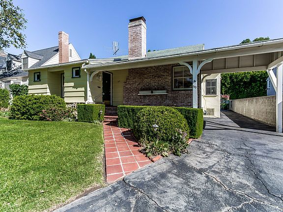 Located in the coveted San Rafael flats area of Pasadena, this lovely traditional home retains a wonderful sense of space and classic style. The property features a lovely port-cochere and covered entry. Many of the original details of its era are showcased with hardwood floors, beautiful crown moldings and wainscoting detail in the formal dining room and built-in vanity in the master bedroom. The sizeable light filled living room offers a lovely wood/gas fireplace, and built-ins. The kitchen has a wonderful newer floor and enjoys a pass-through detail to the rear yard. Perfect for outdoor entertaining, the rear yard boasts an enchanting pergola and features a wood-burning fireplace that doubles as a barbecue grill. The home also features central air conditioning.