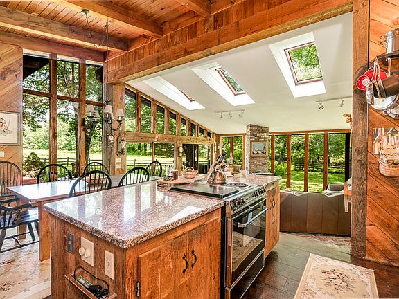 Remarkable Well-Appointed Country Contemporary Beauty nestled on 12.8 acres welcomes you with rustic charm & character throughout coupled with many modern amenities. Excellent home for entertaining or relaxing in privacy. You'll love the open layout offering lots of natural light, exposed beams, beautiful hardwood floors with rosehead nails, and exceptional craftsmanship throughout. Large eat-in granite kitchen w/island and lots of storage, open to two expansive living rooms each with wood stoves. Marvelous recently remodeled full bathroom boasts carrera marble, Kohler fixtures, and steamroom shower. Wait there's more! A stunning in-law 1BR 1BA suite offers open kitchen with living and dining area with rustic charm and hardwood floors, remodeled bathroom with marble floor, delivering a highly successful AirBnB operation & destination. On the 12.8 acre grounds is a 2 stall horse barn, 4 bay carport, a propane heated in-ground pool and hot tub, and more!