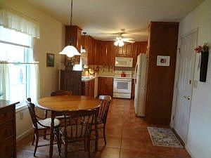 Lovely 3 bdrms, 2 bath ranch home inc., maple kitchen w/ ceramic tile fl. & backsplash, Living room w/ gas fireplace, bookshelves & cathedral ceiling & a lovely 10~~~x16~~~sunroom overlooking mature gardens. 2 car gar. & radon mitigation system. Located in 55+ community. Land lease inc. free use of Community Center w/exercise room, pool tables, ping pong, library & coffee shop etc.