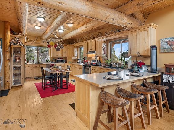 Nestled within the breathtaking landscape of towering Douglas fir trees and rugged granite formations of the Boulder Batholith, this remarkable property offers not one, but two homes, each poised on its own private parcel within the expansive 20-acre estate. This unique opportunity presents a lifestyle of serenity and natural beauty. The first home, a testament to craftsmanship and rustic elegance, stands as a log masterpiece meticulously crafted by the skilled hands of the Amish in 2011. Boasting approximately 2,500 square feet of living space, this residence seamlessly blends luxury with the tranquility of its surroundings. Upon entering, one is greeted by spacious and inviting great room, adorned with the warmth of natural wood and bathed in sunlight through expansive windows. The heart of the home, a beautiful and well-appointed kitchen, invited culinary delights and gatherings with loved ones. The main floor also features a serene master bedroom retreat, offering respite after a day of exploration, along with full bath for added convenience. Ascend to the loft bedroom, a cozy sanctuary with room to comfortably accommodate two, offering unparalleled views of the majestic Tobacco Root Mountains and Highland Mountains. Step outside onto the full-length covered deck, where sweeping vistas unfold before you, inviting moments of reflection and appreciation for the beauty of the land. With its two-car tucked neatly beneath, this home seamlessly blends functionality with the allure of mountain living. The second home is just a stone’s throw away, poised amidst its own secluded enclave. While awaiting its finishing touches, this residence holds boundless potential for customization and personalization to suit your vision of mountain living. Nestled close to a developed spring, a manmade pond, and a gentle tributary of Pipestone Creek, this home site offers a unique opportunity to embrace the rhythms of nature. Beyond the boundaries of these two distinct homes lies a sanctuary for wildlife, where deer, elk, coyotes, and black bear roam freely amidst the splendor of the natural world. Whether seeking a private retreat, a legacy property to share with loved ones, or an opportunity for investment and development, this 20-acre estate offers limitless possibilities amidst the untamed beauty of Montana’s wilderness. Embrace the essence of mountain living and create your own story amidst nature’s grandeur.