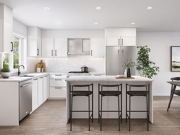 Custom kitchen cabinetryStainless steel appliancesQuartz counters and backsplashNuheat heated ensuite floors