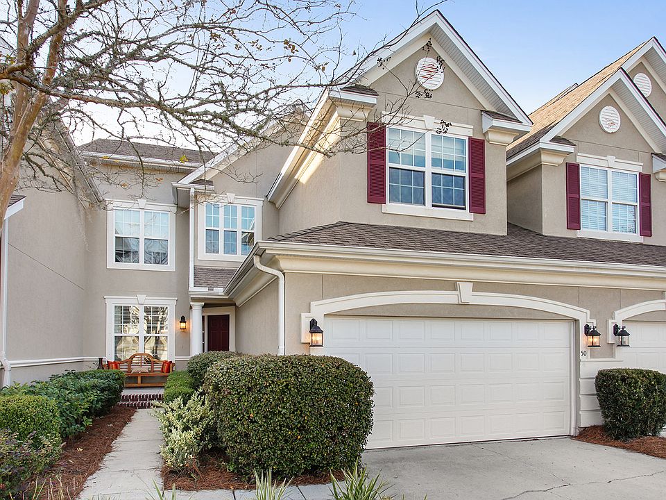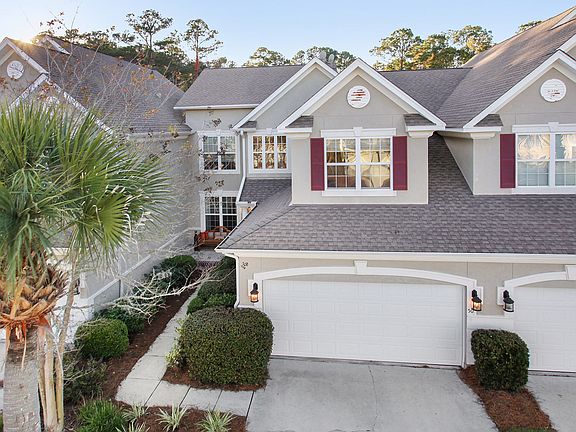 HAMPTON HALL LUXURY CARRIAGE HOME. Villamere Model, totally updated, new paint, appliances, walk to all amenities, 3 bd, 2 1 2 bath, Maintenance Free Living, Cathedral Tray Ceiling, soaring two story living room, 2 gas fireplaces one in master bedroom with ensuite, guest bedroom ensuite, hardwood floors, gourmet kitchen, cherry cabinets, double ovens, new stainless steel appliances, granite counters, screened in Lanai, close to Hilton Head beaches, Old Town Bluffton, and Savannah. Amenity Rich Community with: golf, tennis, bocce ball, pickle ball, basket ball, 2 restaurants, 2 pools, one indoors, gym, on site spa, fitness classes and more.