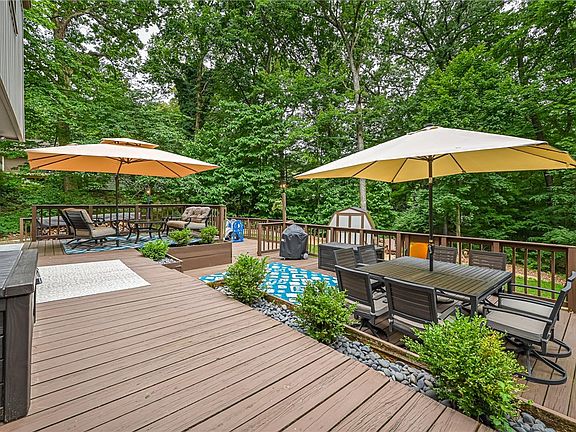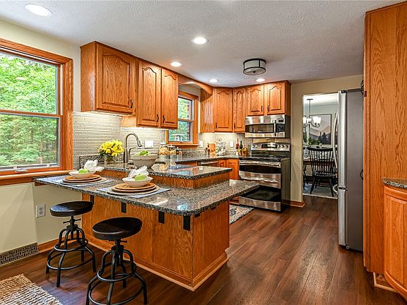 SERENITY & TRANQUILITY....THIS HOME IS A MUST SEE....Located in Bradford Woods!! Situated on this quiet, serene 1 acre wooded lot. Recently updated FR, DR & LR spaces...beautiful luxury vinyl "hardwood finish" flooring, updated lighting throughout, updated paint colors & additional decor components that make this home truly UNIQUE!! The kitchen offers plenty of cabinetry, stainless steel appliances, granite countertops, "kitchen island" counter space with seating, and much more!! Plenty of natural sunlight...large kitchen window & sliding glass doors allow entertaining to continue outside on this gorgeous multi-deck space! It truly is an outdoor OASIS.....fire pit, large area for outdoor dining & conversations, grilling, and a slide for the kiddos...which leads to large yard surrounded by beautiful mature trees! This HOME includes 4 spacious bedrooms, 2 1/2 baths, large closets. Downstairs space offers, workout area, laundry & workshop area. NA Schools. Community walking trails.