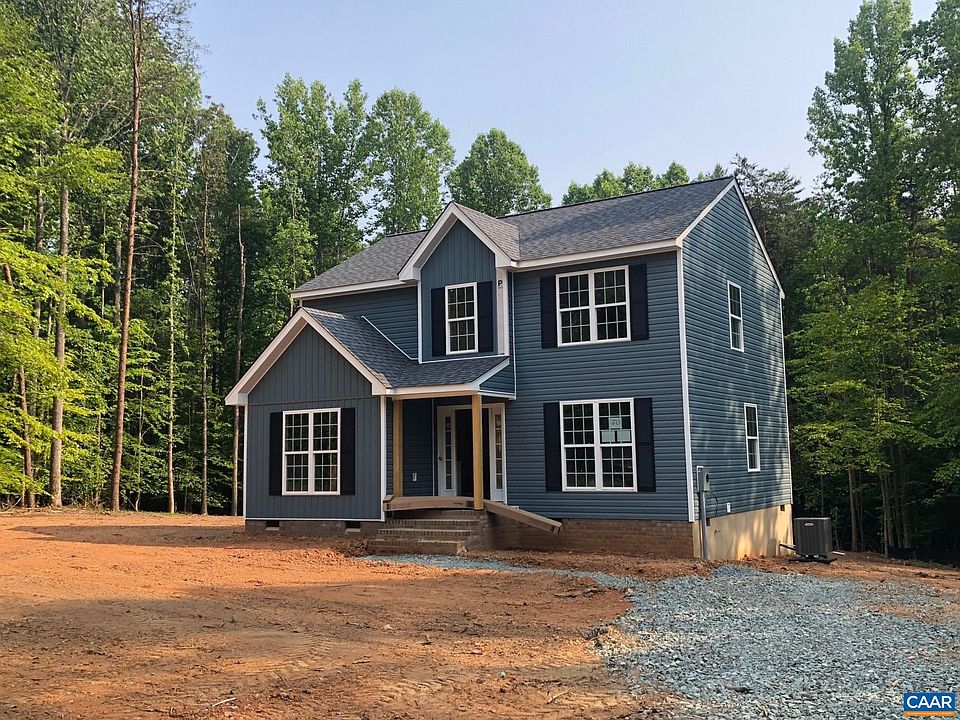 Exterior photo taken 6/9/23. Interior pics are a similar finished home. 5 Acre site offers loads of privacy & access to community boat dock! The open floor plan includes 4 bedrooms, 2.5 baths w/ primary suite on the first-floor. The kitchen has upgraded 36" cabinetry w/ crown molding, island, granite countertops, stainless appliances & dining nook. Craftsman rails on interior stairs lead to 3 addt'l 2nd floor bedrooms, full bath & laundry. Pull-down attic storage, brick front stoop, 10x10 deck, upgraded siding accents, wide window trim, Craftsman style front door, & dimensional shingles complete the package. Dogwood Lake Estates enjoys high speed fiber broadband provided by Firefly. 3 bedroom septic system accommodates 6 full time occupants. Drive out to see this exceptional offering!