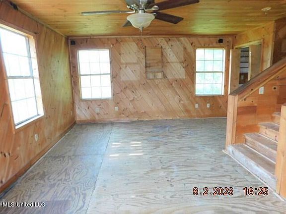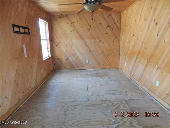 Wood on the walls and plywood flooring give this house the rustic look and feel of a cabin.