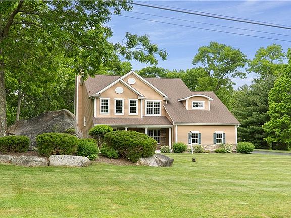 50 Shannon Road is an idyllic home wonderfully situated on a wooded cul-de-sac. The home sits on just under 1.5 acres and immediately abuts conservation land which makes for an extremely private setting. The neighborhood is lovely with beautiful surrounding properties in every direction. As you approach the home, you'll note the stone front coupled with the mahogany front porch & door which adds so much to the home's architectural appeal. Upon opening the front door, you'll find the great room and dining room with nine foot ceilings and crown molding that continues throughout the main level. The main level boasts hardwood flooring, living room with floor to ceiling stone fireplace, spacious dining area, modern granite kitchen and powder room. The second level has three spacious guest bedrooms, full bathroom, laundry area and a truly amazing primary suite. The primary suite features a sitting area with gas fireplace, coffered ceiling, recess lighting, huge bathroom with soaking tub & shower and walk-in closet. The wooded, ultra private backyard is an entertainer's dream with a deck and lush green lawn. This home, property and neighborhood are as close to perfection as you will find. A truly special place to call home.