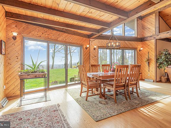 Welcome to your private wooded paradise! This stunning 4 bed, 4 full bath Contemporary Cape Cod sits on 5.91 acres of serene countryside, offering peace & tranquility. Main level features an open, & airy layout which includes an updated modern kitchen, formal dining & living rooms, den w/ stone fireplace, primary suite w/ private full bath, additional bedroom attached to 2nd hall full bath & central vac system. Walls of windows lets in natural light along with beautiful views from every angle. The second floor offers a loft bedroom attached full bath, spectacular views & private balcony. The finished walk-out level basement is perfect for entertaining & boasts a 4th bedroom, full bath, wet bar w/ fridge, wood stove & 2 additional finished bonus rooms. You will love this secluded professionally landscaped property, w/ a beautiful 2 tier deck that features a partially enclosed gardening room/workshop & a hot tub overlooking a serene garden. The spacious garage offers a pantry with washer/dryer hook ups. Don't miss this rustic dream home and schedule an appointment today! Check out the virtual tour!