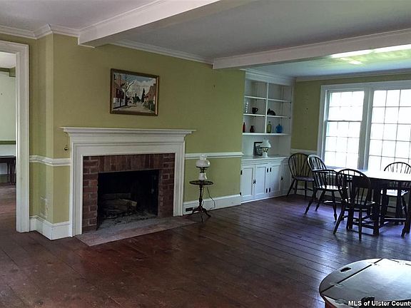 Near the end of a quiet, dead end country road and set well back on the 4.94 acre parcel is where you will find this 1982 Colonial Home. Just waiting for someone to come revive it to it's full potential. Beamed ceilings with crown molding, chair rail, built-ins, wood floors, 6 over 9 windows and brick fireplace adorn both the living and dining room. The Country style kitchen is big enough for all the cooks. There are also two small rooms that may be combined into a first floor bedroom with modifications. The two bedrooms on the second floor each have a private bath. I can see the hallway being opened up to a nice sitting area. The home does need work and as such they are selling it as is! This is a project for someone with imagination and is well worth the investment.