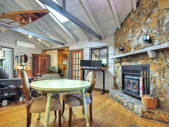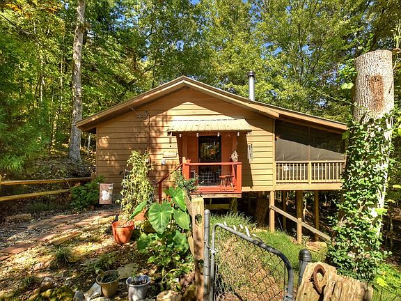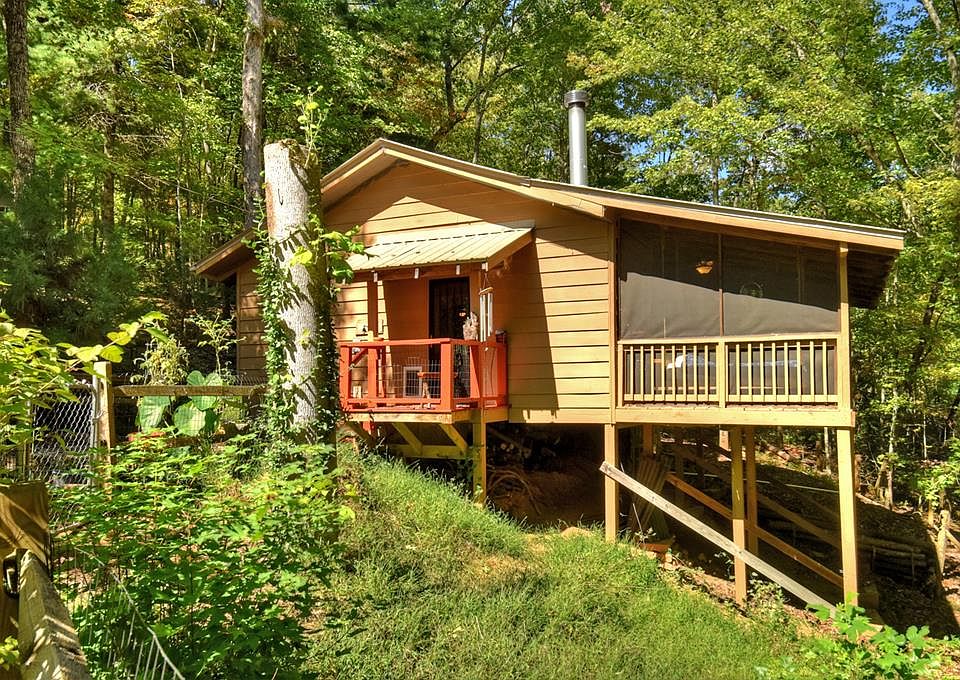 Escape to this authentic, beautifully maintained cabin nestled in a serene woodland setting. With private, unrestricted land, this haven invites you to immerse yourself in nature's tranquility. Step inside to discover soaring vaulted ceilings and warm hardwood floors that exude charm and comfort. The cozy Buck Stove wood-burning fireplace promises to keep you warm on chilly nights, creating the perfect ambiance for relaxation. Retreat to the oversized bathroom, where a stunning clawfoot tub beckons for leisurely soaks after a day of adventure. Venture outside to the enchanting, screened porch, surrounded by trees, complete with a delightful hanging bed perfect for summer nights under the stars. This space can easily be transformed into a second bedroom, offering versatility for guests. The property boasts a fenced courtyard, an insulated workshop providing ample space for creative projects, and for those seeking tranquility, a private detached yoga studio awaits. This captivating cabin is more than just a home; it's a gateway to a lifestyle filled with peace, beauty, and endless possibilities. Come experience the magic for yourself!