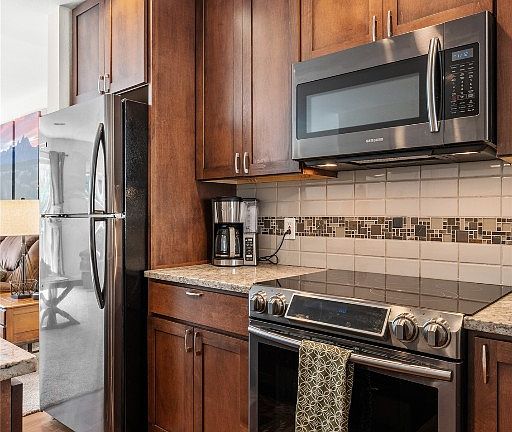 Pride of ownership shows..total remodel of the kitchen, self closing cabinets, newer stainless refrigerator, electric cooktop, Quartz counter tops for easy cleaning, and an island with bar stools for family and friends to supervise the Chef.