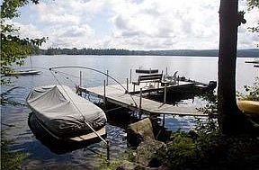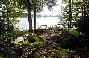 MOOSE POND WATERFRONT HOME W/3 BR,2BATH,2C GAR. 112' OF PRIME LAKEFRONT AND ALSO DEEDED ACCESS TO A HUGE SANDY BEACH JUST A SHORT WALK AWAY, SHAWNEE PEAK SKI LODGE ACROSS MOUTAIN. LOCATION,LOCATION,