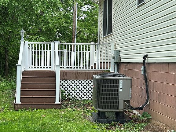 This quality and well maintained home is move in ready! Offering 3 bedrooms and 2.5 baths has been professionally cleaned and painted with vinyl plank kitchen floor and new carpet installed throughout the main level...the open living, dining and kitchen area offers a front bay window, stainless appliances and pantry closet. Off of the dining area is a door leading to the low maintenance composite deck perfect for outdoor enjoyment! The main bath offers a tub and shower and the owner's bedroom and bath includes a stand-up shower. The lower level has new drywall, insulation and paneling and includes a family room or rec room, laundry room with 1/2 bath, under the stairs storage area and lg walkout garage with sump pump. Other amenities include the circular driveway and storage shed all situated on a beautiful 1.37 acre lot. Don't miss this lovely home...won't last long! Electric fireplace in lower level and propane fireplace on main level stay...just needs propane tank.