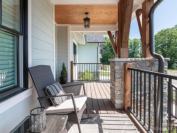 Welcome to luxury living at its finest! This exquisite house boasts a spacious private fenced level back yard adorned with mature trees, offering unparalleled serenity and seclusion. Inside, the open great room concept with vaulted ceilings creates a grand ambiance, complemented by a stunning stone fireplace featuring a barnwood mantle. Indulge your culinary passions in the chef's kitchen, complete with a large island, granite countertops, Fulgor Milano appliances, and a convenient pot filler. The main level presents a lavish primary bedroom suite, featuring a garden tub, dual sinks, an oversized walk-in shower, and a walk-in closet. The second story reveals a versatile fourth ensuite bedroom, perfect for a home office. Enjoy the shade on two covered porches, ideal for outdoor entertaining or simply relaxing in style. Located in close proximity to South Asheville's vibrant shopping and dining scene, offering easy access to downtown and airport.