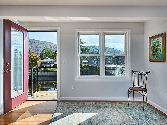 Discover unique condo living in the Village of Shelburne Falls. Perched over the Deerfield River and overlooking the Bridge of Flowers and the hills beyond. Relax on the balcony, admire the unprecedented views of the famous flowered bridge and beyond as the river flows below providing a sense of calm. Direct river access offers you the ability to drop in for a dip or peaceful paddle. The units feature a sunlit interior capturing the scenic surroundings sporting attractive kitchens with stunning Ashfield Stone countertops, new appliances, bamboo floors, tiled bathrooms, and modern mini split heating/cooling units. Solar panels will be added in 2024 to provide most of the unit energy needs. On-site designated parking and 6 x 12 storage units are provided. Imagine an evening walk across the Bridge of Flowers, dine in nice restaurants, visit artisan shops, banks, pharmacy, grocery stores and all other benefits that make this Village so special. This truly is a unique opportunity.