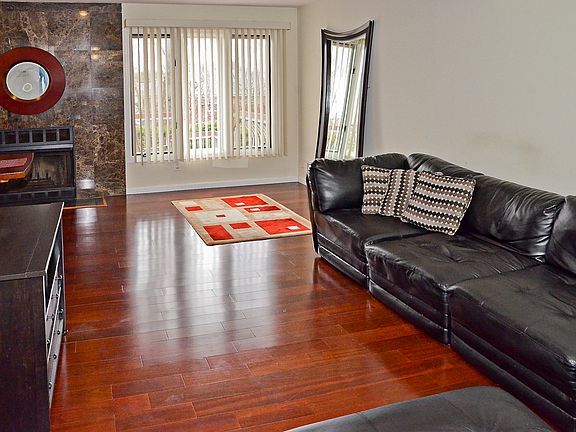 Stunning, 2 BR / 2.5 bath town home. Front door opens to foyer with customer inlay floor. Distinctive HW floors lead to family room / dining room highlighted by fireplace, set against a granite wall. Huge two-story deck offers space for grilling and entertaining guests, w/ stairs to the lower level. Updated kitchen cabinets and countertop. 2nd floor opens to two large BR's and full bath. Walk-out basement leads to private patio. Partially-finished basement houses a full, spa-like bathroom. Low HOA fees of $110/mo. include lawn care, outdoor pool, tennis courts, deck staining, and window/door painting.