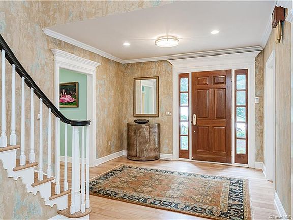 This one has it all! As you enter the front door you will be greeted by the gracious curved stairway. The formal living and dining rooms are the perfect place to entertain with high ceilings, hardwood flooring and great light. Around the next corner is the amazing kitchen. A large center island w/ breakfast bar, space for an eat in table, Dacor double ovens, Viking gas cooking, a warming drawer, granite counters a huge walk in pantry make this space the true "hub of the home". Just off the kitchen is the family room, with a gas fireplace & cathedral ceiling, enjoy great windows that over look your spacious deck & large/level, private back yard. A large mudroom with great storage and built-ins connects to your 2/3 car garage. The rear garage space with built in heating/cooling makes for a fantastic home studio space. Back inside is the library/study with two walls of great built in shelves. Two half bathrooms complete this level. The second living level offers five bedrooms. The large master suite has two closets and a well appointed master bathroom. Two of the four additional bedrooms have private baths, while the final two bedrooms share a hallway bathroom. Each bedroom features ample closet space and hardwood flooring. The lower level is a treat. Here you have a workout room, recreation room and an office with full bathroom. Overall, enjoy large rooms, good ceiling height and great closet space while living on a quiet street close to the Hartford Golf Club. Must see!