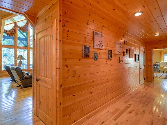 STUNNING, LODGE STYLE HOME. This exquisite home offers a luxurious master suite w/ its own cozy FP, spacious bath with jacuzzi tub & stand up tile shower, custom, walk-in closet. Expansive living area w/ gorgeous stone FP, formal dining area next to an incredible kitchen also offers its own FP. Sizable laundry room w/ sink, convenient cabinets & large pantry also on main level. Lower level offers a perfect recreation space along with full kitchen, home theater and more. Outdoor features will amaze you, 2 car detached garage & 4 car detached garage, both with workshop space. Small pond w/ branch. Complete with furnishings!! Perfect mountain retreat for large family gatherings!!