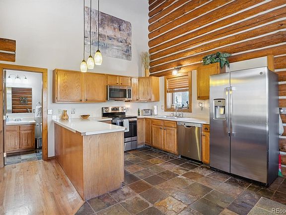 Nestled high in the mountains, surrounded by towering pine trees and crisp mountain air, sits a log home that seems to have been plucked straight from a postcard. The exposed log interior, hardwood floors and warm, earthy stones, blend seamlessly with the natural beauty of its surroundings. But it's what is inside that truly takes one's breath away. Large windows, perfectly positioned throughout the home, offer million dollar views of the surrounding peaks. The living room, with its cozy wood burning stove is the perfect spot to take in the beauty of the changing seasons. The bright, open floorplan flows effortlessly offering lots of natural light and beauty with two bedrooms on the main level and the primary suite spanning the upper level.