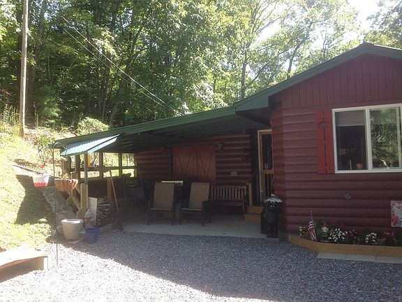 Beautiful, immaculate cabin in the woods! Imagine sitting on your screened deck and enjoying the peace and serenity of living in the mountains. Invite your friends to join you around the relaxing fire pit This freshly painted home has D-log siding and new metal roof in 2017. Spacious metal garage (9' wide door) to store your kayaks, fishing equipment and even your car! Looking for the ultimate man cave? This one has it! Plenty of usable outdoor area for planting a vegetable garden or a play area for your children. Large owners suite and a nice guest bedroom for your visitors. This is that private cabin that everyone is looking for and now you have found it!