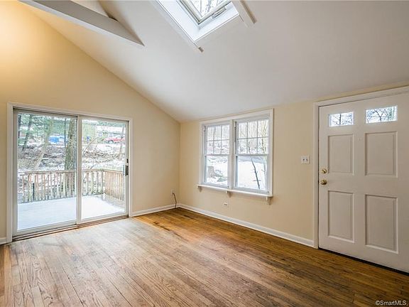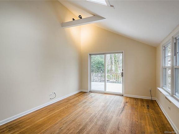 Check out this charming 2-bedroom ranch set on a private ½ acre just minutes from Bethel town center! This light & bright home features hardwood floors, two sets of sliders to the wood deck, freshly painted interior and an updated full bath. Spacious white kitchen with tile floor and convenient side door/mudroom entry. Cathedral ceilings with skylights in the living room and master bedroom enhance the space. One car detached garage and storage shed on the premises. Central air too! Conveniently located in a natural setting, close to shopping, in-town dining, train station and library. This adorable home is perfect for those looking to downsize or just starting out--the perfect condo alternative! Sold in "as-is" condition.