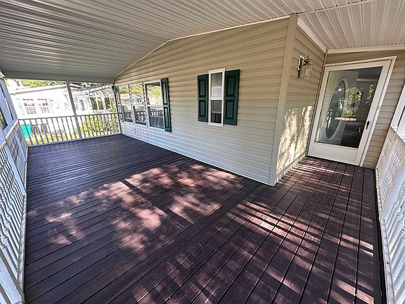 This manufactured home was designed with every detail of comfort, convenience and ease of maintenance in mind. An amazing kitchen layout includes generous cabinet and countertop space that wraps around the eat-in-kitchen area. A formal dining space is accented by a mirrored wall and candelabra lighting fixture. The living room is accented by a brick fireplace with formal mantel and gas insert for cozy ambience. The primary suite includes a walk-in closet, a bath with a double sink and walk-in shower. A second full bath is accessible to the living area, second bedroom and office/den located at the far end of the home. The laundry/utility area is also separate from the living space leading to the back door and deck which is the perfect place to grill or enjoy the sunshine. Generous windows let in the refreshing breezes and bathe this home in natural sunlight. Central Air conditioning makes those hot summer days a pleasure! A favorite place to relax and watch the day roll by, will surely be the spacious screen porch. The two-car detached garage provides ample space for lawn maintenance equipment and seasonal furniture with automatic door opener, overhead storage, shelving and benches. All of this convenience awaits when you make this home your own!