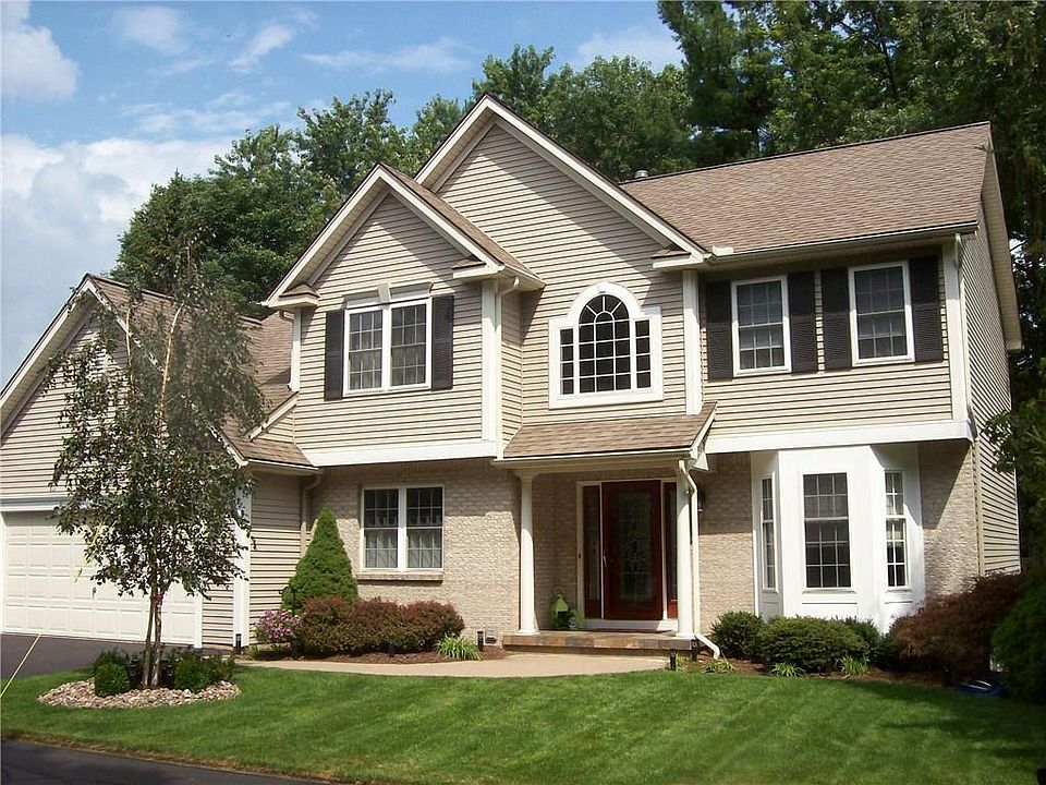 Beautiful contemporary colonial built in 2000. Rare find in West Irondequoit with 4 bedrooms. Walk out basement, great teen suite or in law potential. Cathedral great room with large windows over looking wooded park like yard with access to pond. Freshly painted kitchen with island and hardwood floors. New stainless steal appliances, gas fireplace, crown and chair moldings, bay window, 2 tier decks and much more!