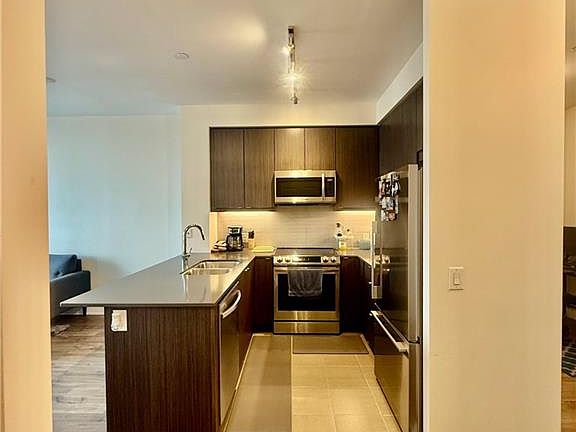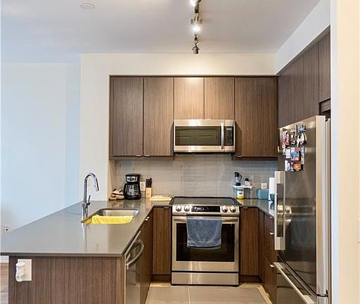 Built in 2023, Cypress at Pinnacle offers the comfort of a newer building for this bright and functional 1-bedroom + den suite. A rare 260 sq. ft. private terrace with unobstructed views makes this suite stand out from others in the building, serving as an outdoor extension of your home that’s perfect for entertaining, dining, gardening, or simply relaxing under the skyline. With 673 sq. ft. of thoughtfully designed interior space, the suite provides a total of 933 sq. ft. of living area, blending indoor comfort with an unmatched outdoor lifestyle. Inside, you’ll find a contemporary kitchen with quartz countertops and stainless steel appliances, opening seamlessly to the spacious living and dining areas with a walkout to the terrace. Floor-to-ceiling windows in both the living room and bedroom flood the suite with natural light, creating a bright and welcoming atmosphere throughout. The bedroom offers ample closet space, while the versatile den adapts easily to your needs – whether as a home office, entertainment area, or guest room. The convenience of in-suite laundry adds to the modern functionality. This suite also includes one underground parking space and a locker for extra convenience. The building offers an impressive array of amenities for all ages, including a kids’ play area, fitness centre, rooftop BBQ terrace, party and study rooms, visitor parking, and 24-hour concierge. Families especially value the kid-friendly amenities that make this building unique. Located just steps from the Kipling Transit Hub (TTC subway, GO Transit, MiWay), commuting downtown or across the GTA is effortless. Everyday essentials are close at hand, with Farm Boy, Costco, IKEA, Sherway Gardens, and a variety of shops, restaurants, and parks nearby. Quick access to Hwy 427, QEW, and the Gardiner ensures seamless connectivity. This thoughtful condo is move-in ready. A must-see condo unit!!!