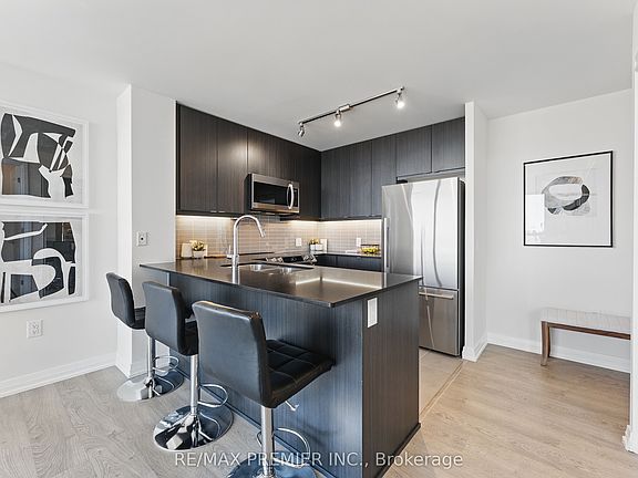 Welcome to Suite #2409 - perched just beneath the penthouse, this exceptional residence captures the essence of elevated living with breathtaking panoramic views of the city, lake, and skyline; views that only a corner suite can offer. Sunlight pours in through expansive floor-to-ceiling windows, wrapping the space in warmth and energy throughout the day. Designed for both comfort and sophistication, this split 2-bedroom layout offers the perfect blend of functionality and style. The heart of the home is a chef-inspired kitchen, complete with quartz countertops, designer soft-close cabinetry, sleek newer appliances and a glass tile backsplash that adds a polished edge. A stylish dining/breakfast bar makes entertaining easy, while the open-concept living and dining area flow effortlessly to your private balcony, your front-row seat to stunning views and city lights. Retreat to the tranquil primary suite, where stunning vistas meet comfort, complete with a spacious closet and a 3pc ensuite with glass-door shower. The second bedroom offers flexibility for guests, a home office, or a personal sanctuary, complemented by a serene main bathroom with a soaker tub. Enjoy thoughtful features like high ceilings, wide-plank flooring and a layout that maximizes both privacy and flow. Residents enjoy top-tier amenities: 24hr concierge, rooftop terrace, BBQs, party & theatre rooms, co-working hub, yoga studio, kids playroom, bright modern gym, and more. Owned parking and locker add peace of mind. You're steps to Kipling Subway & Go Train Stations, top schools, parks, shopping, dining, and major highways. This is your chance to live above it all...comfort, convenience, and captivating views await.