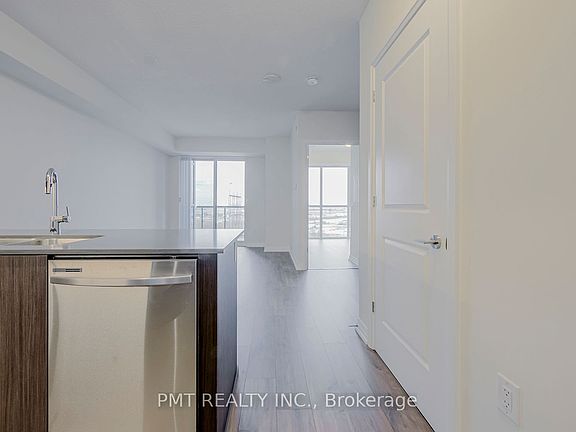 Welcome to Suite 718 at 50 Thomas Riley Road, a modern 1 bedroom plus den residence in the Cypress Condos, offering a well-designed layout and clean, contemporary finishes throughout. This suite features approximately 626 sq ft of interior living space plus a private balcony, with durable plank-style flooring and an open-concept living and dining area that flows seamlessly outdoors. The kitchen is thoughtfully designed with sleek cabinetry, a ceramic tile backsplash, under-cabinet lighting, stainless steel appliances, and a functional breakfast bar. The primary bedroom offers generous closet space, while the separate den is ideal for a home office or flexible living use. Residents enjoy a full range of building amenities including 24-hour concierge/security, visitor parking, a fitness center, yoga studio, party and meeting room with kitchenette, a landscaped rooftop terrace with BBQ area, and a children's play space. Conveniently located steps to Kipling subway and transit, with quick access to major highways, shopping, dining, and everyday essentials. One parking space and one locker are included.