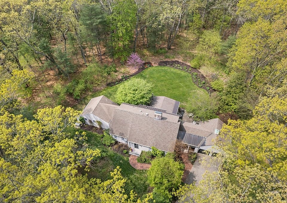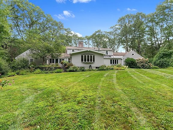 Tucked away at the end of a peaceful cul-de-sac, this expanded five-bedroom Cape offers the perfect blend of comfort, space, and natural beauty. Set on a stunning two-acre lot with lush gardens,mature trees, and flowering plantings, the property borders conservation land, creating a private and tranquil setting just steps from walking trails and the elementary school. The thoughtfully designed layout includes a first-floor primary suite with exposed beam vaulted ceiling, walk-in closets and luxe bath, a second bedroom on the main level, and three additional bedrooms with a full bath upstairs perfect for growing family or extra guests. The recently renovated kitchen is a chef’s dream with wolf appliances, and cozy fireplace, with a custom breakfast banquet. A cathedral-ceiling family room with wood stove, creating a warm and inviting gathering space. A formal dining room offers room to entertain, while a side entry leads to a spacious mudroom and home office, and 2 car garage.