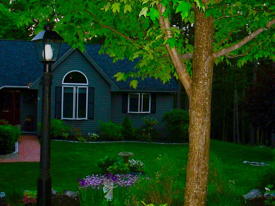 50 Timberlane, Wolfeboro NH, a paved country road located off the Main Street to downtown Wolfeboro. Walk to the schools, library, hospital, or in to town via the sidewalk that comes right off Timberlane Road. This beautiful lot is meticulously landscaped, very private with a serene setting. Filtered views of Lake Winnipesaukee and the mountains. Floor plan is desirable as all living can be on one level, however home does have a finished lower level that walks out to the yard. Vaulted ceilings, gas fireplace, custom built-ins are only a few features. There is a 2 car attached garage with an abundance of storage. Additional shed allows you to have a home for everything. A wonderful family home, retirement home or vacation home.