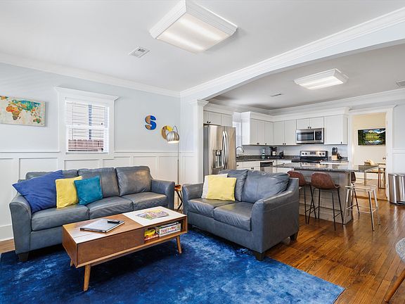 Welcome home to this beautifully renovated brick Craftsman Bungalow, ideally located just one mile from Downtown Greenville, Fluor Field and within walking distance to the vibrant Village of West Greenville. Embrace the local charm with nearby favorites like The Village Grind, Coastal Crust, Rise Bakery, The Anchorage, and Bar Margaret, just to name a few. Come inside where the living room and kitchen are an open space with charming original oak floors. The kitchen boasts a large center island, perfect for seating six, granite countertops, and ample cabinet space. The spacious master bedroom easily accommodates a King size bed with an attached bath featuring dual sinks and a walk-in tiled shower with glass doors. The sizable walk-in closet adds a touch of luxury. The second bedroom accommodates both a queen and a twin bed, complemented by ample closet space. The second full bath is spacious, featuring a tub and shower. A separate laundry room offers great cabinet space for storing supplies. Enjoy the added features including custom trim work and heavy crown molding throughout this home. Relax with your favorite drink or morning cup of coffee on the welcoming front porch. The yard has wood fencing on 3 sides for added privacy. Don’t miss the chance to make this adorable home yours. Schedule a showing today and embrace the perfect blend of modern comfort and classic charm.