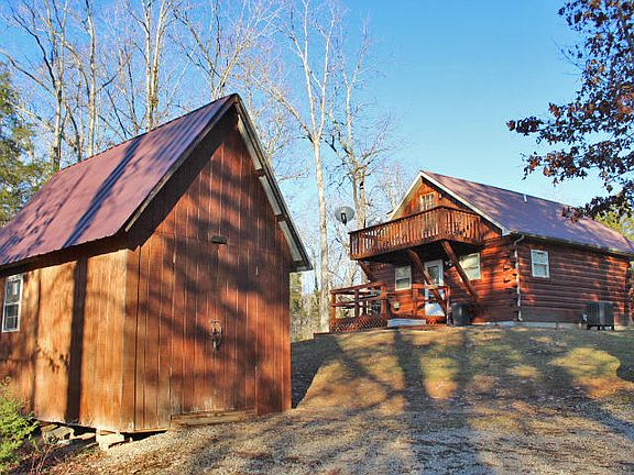 Fisherman or boaters dream getaway that comes furnished and is move in ready! No HOA fees and is walking distance from boat ramp located in neat and tidy Hails Haven. This 2 bedroom, 1 1/2 bath log cabin has beautiful wood floors, walls, and ceilings, plus has a newer Trane 2 ton heat pump making the cabin exceptionally energy efficient. Also features a super nice wood sided storage building that matches the cabin. Perfect investment opportunity and would be great as a nightly vacation rental!