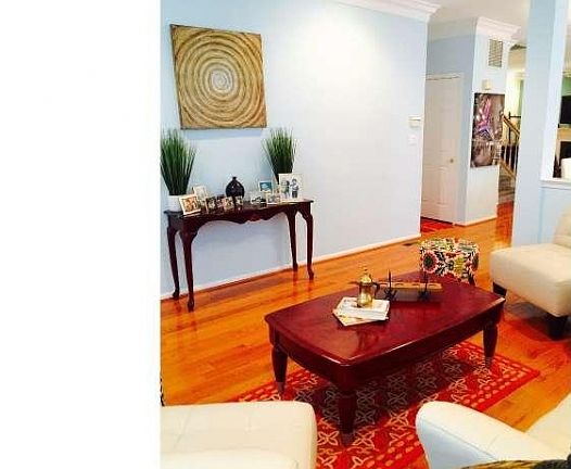 Aesthetically pleasing 3 bedroom plus den 2 1/2 bathroom end unit townhouse conveniently located off rt 295 off a prestigious Marlkress Rd. in the most desired community. Mins away from major highways and shopping. This beautiful home boasts tons of upgrade on all levels and is immaculate. Upgraded and extended kitchen with brand new stainless steel appliances, top quality granite counter tops, granite breakfast bar coupled with white cabinets. Hardwood on first level with crown molding and recessed lighting through out. 2nd floor has master bedroom with large bathroom and walk in closet finished with organizers. Master bedroom has cathedral ceiling recessed lighting and separate den which could be your extra office space,2 junior bedrooms share the same floor and junior bath with tub. Laundry is conveniently located on 2nd floor in a separate area and storage space. Finished basement and large overlooking deck. Gas Fireplace in family room with marble frame. Custom landscaping with zoned sprinkler system. 1 car garage with 2+ parking spots. Garage floor done in epoxy with heavy duty wooden shelves ready. Finished basement with separate storage area done with heavy duty shelving on either sides of wall providing ample of storage options. Basement is also ready with wiring and screen for theater entertainment. Lots of natural sunlight in the house. Backing the woods for privacy.