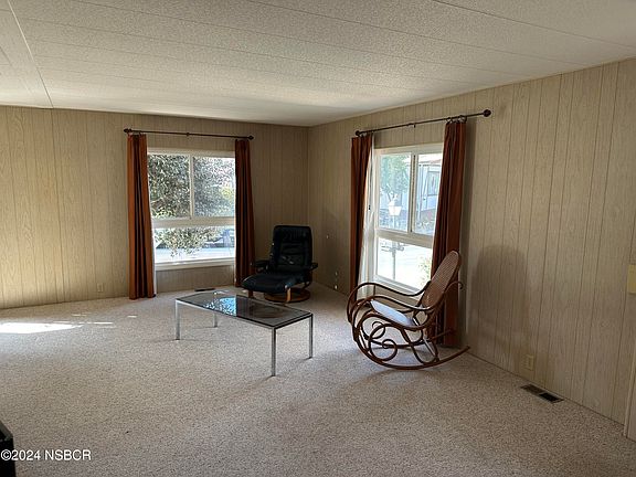 Dual Wide home 2 bedrooms and 2 baths., situated in the lovely Rancho SY Estates in Solvang. Dual pane windows, private setting with trees and no one directly behind you. Woody setting with foliage that soothes the weary. Spacious yet not overbearing. Breakfast area just off the kitchen. Mountain views. Sold with all appliances. Come take look and see for yourself. Rent includes water, trash, and sewer plus all of the park amenities pool, clubhouse, billiard room, Bocce court ,spa, library, & several 9-hole pitch and putt golf courses. Potential buyer check with the office to verify monthly space rent.