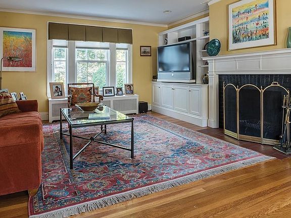 Set on a lovely circle in Newton Centre, this meticulously-maintained residence has a floor plan with beautiful hardwood flooring, lots of windows providing abundant sunlight, and front and back staircases. The first floor features a spacious entrance way leading to an oversized living room with a fireplace, a sun room, an elegant dining room, a large renovated kitchen with an eat-in area, a half bathroom, and a mudroom with access to the backyard. The second level is comprised of a charming master bedroom with an en suite bathroom, a fireplace, and access to a private deck; two other bedrooms; and a full bathroom. The third floor has two generously-sized bedrooms and a full bathroom. The basement is partially finished with a family room and a laundry room. The level yard includes a patio and expansive side yard. There is a detached two-car garage. This property is convenient to Newton Centre, Newtonville, highways, schools, the library, houses of worship and Bullough's Pond.