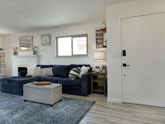 This is the one you've been waiting for! A single story end unit securely inside the gates of Ridgemark Golf & Country Club. Owners can enjoy the Clubhouse and Restaurant within walking distance and easy in/out access by car for commuters. This property is qualified for a "Zero Down 100% USDA" loan! Newer floors throughout: Carpet in the bedrooms/hall, LVP in Bathrooms, Laundry & Ceramic Tile throughout the rest. When you walk in you will think you're in the Model Home! A wood burning fireplace highlights the living room; and everywhere you look this condo is very stylish, bright and open. Enjoy a private covered patio which is perfect for mild Hollister weather and overlooks the golf course in fallow - no neighbors in back. Both bedrooms can each easily accommodate a king size bed. And the Primary bedroom has dual closets, each with oversize mirrored doors turning the area into your private dressing room! Both bathrooms have been updated and a new Spa-size Step-In Shower in the Primary. There simply aren't many condos that give the convenience of everything on one level and no stairs at all going in or out. If you enjoy walking or running, inside the gates is the perfect place for it. To get a better idea, please review the floor plan at the end of the photos.