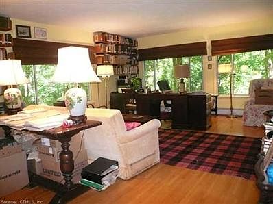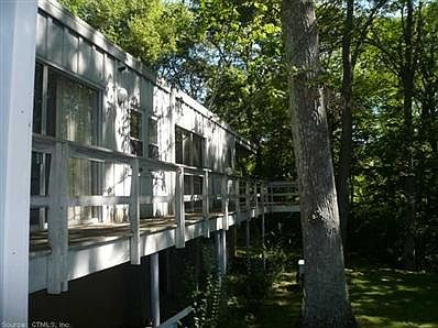 Sachem's Head. 3 peaceful acres w/a superbly built contemp designed by Gilbert Switzer! Very private setting,w/3 BR & 3 baths. Open 1 level flr plan. Breathtaking library. Expansion possible. Seasonal views. Updating needed. Close to town & beach.