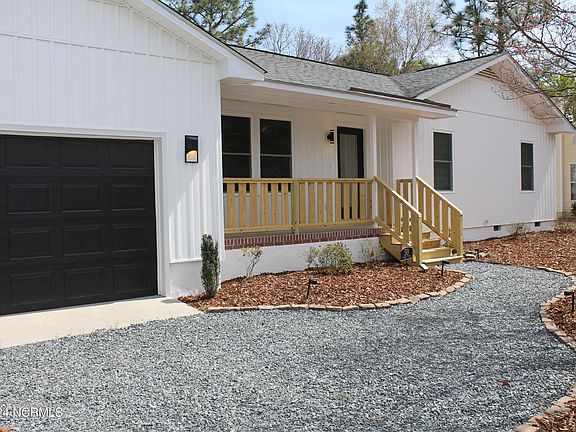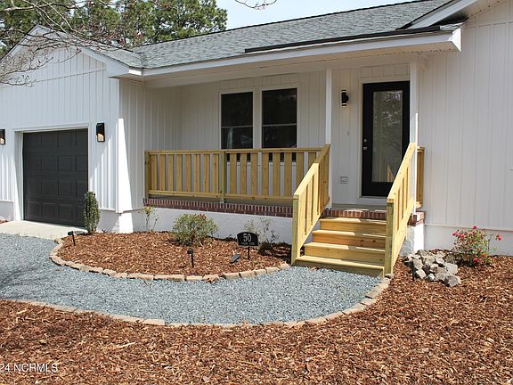Nestled within the sought-after subdivision Village Acres in Pinehurst, this newly renovated home boasts an inviting open concept living space, perfect for modern lifestyles. The kitchen is a chef's dream with quartz countertops, shaker cabinets adorned with striking brass hardware, and updated stainless steel appliances, including a bell curve vent hood. A stunning waterfall island serves as the centerpiece, offering both functionality and style.