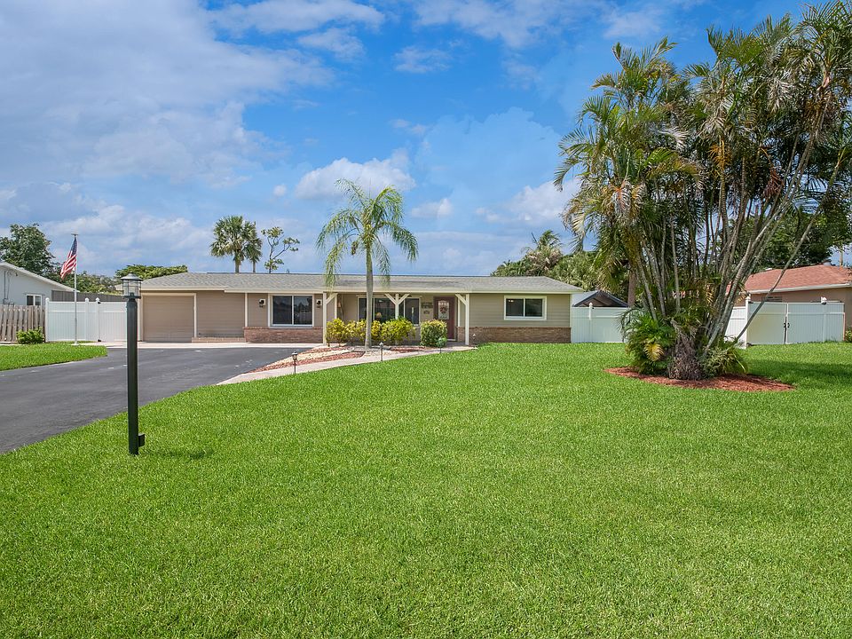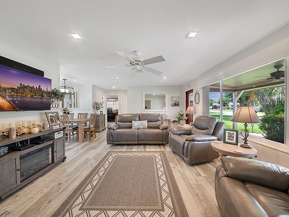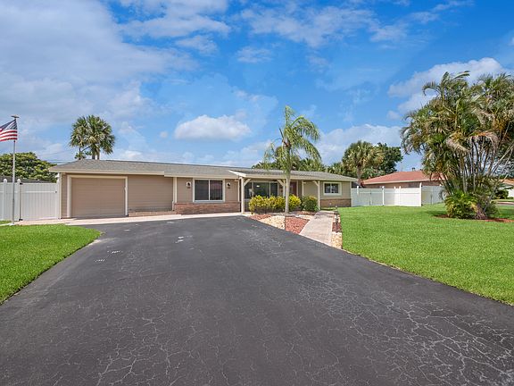Impeccable and ready to move in to!! Nothing needs to be done in this home. This house has been beautifully updated. The large living room has recessed lighting and new flooring. The dining room opens to the living room and kitchen. The dining room French doors are impact. The galley kitchen has been upgraded and has stainless appliances. The large laundry room is off the kitchen and has a utility sink and storage. The master bedroom has a huge walk-in closet. The back yard has a large gazebo and utility shed. Fenced yard. Room for boat & RV. The roof is approximately 6 years old. NO HOA!! All measurements are approximate, the tax rolls adjusted square footage seems correct. Florida Gardens is a desirable community close to the turnpike, shopping, and restaurant