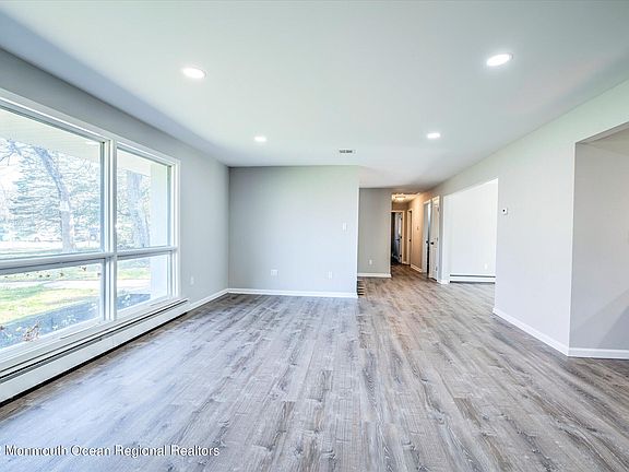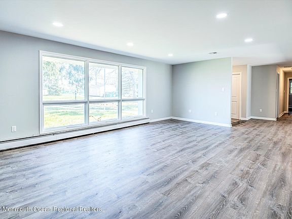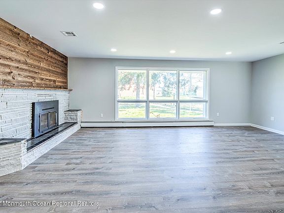 The expanded, turn key and completely renovated 4 bedroom ranch in Ocean Gate that you've been waiting for! This modern and charming home offers nearly 2,000 sq ft of bright and open concept living spaces and oversized side entry attached garage set on a large corner lot backing up to the woods for added privacy. Step into the spacious living room complete with picture frame window and fireplace. The stylish kitchen has a counter bar with enough room for 5 stools and a separate dining room with sliding door. 4 large bedrooms, 2 full, 1 half bath and dedicated laundry. Features include a new roof, newer systems, life proof flooring, hot water baseboard heat, recess lighting and new fixtures. All this just blocks to the famous mile long beach and boardwalk, don't wait to check it out today!