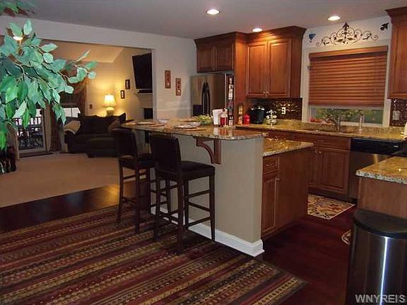 Truly beautiful, extremely well built & well maintained home! Quality built by Wellington Builders. Spectacular kitchen w/large center island; cherry cabinets w/granite countertops throughout, copper back splash & cherry flooring; 1st floor laundry; formal dining room w/arch window; living room w/vaulted ceiling, gas fireplace & French doors leading to maintenance-free deck and back yard! Master bedroom has tray ceilings, walk in closets & master bath w/tile & granite shower stall; finished carpet in basement with rec. area & 8 foot ceilings. Yard has shed, wired for additional storage.