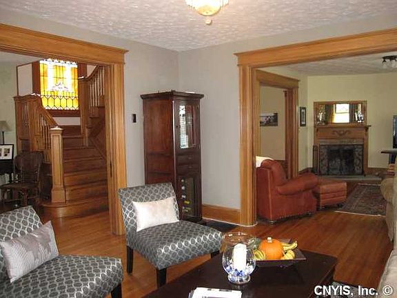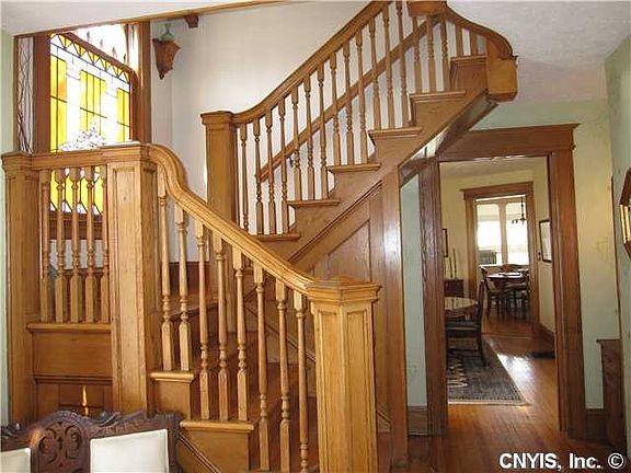 Beautiful turn-of-the-century home that is larger than it appears! The 1st floor has two parlors with working pocket doors, a woodburning fireplace, hardwoods, a dining room with a lighted built-in display case and that magnificent staircase in the foyer. The kitchen is granite, cherry, SS appliances with a full bath to the side. Upstairs are 4 bedrooms, including the master with its own (granite) bath plus a 2nd bath with laundry. The 3rd floor has two huge rooms, formerly used as a media center and older child's getaway. Add a front porch, den/mudroom, rear deck, stained glass and more