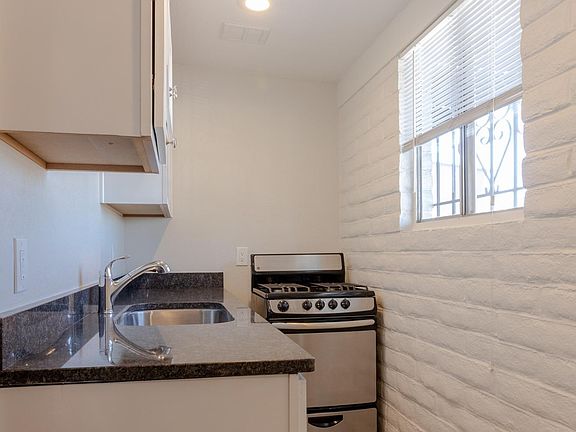 Fully gated community that has comfort and luxury combined. Twin Palms Apartments were renovated in 2019 with luxurious granite countertops, stainless steel appliances including a gas stove. Enjoy the bright apartment with new subway tiling in the bathroom, LED recessed lighting, ceiling fans, and easy care custom concrete flooring. Each apartment has security doors, features custom colors, blinds, and a dining area. These homes are one story and feature a 24 hour onsite laundry, additional storage options, plenty of parking, and BBQ's in the large courtyard. It is pet friendly with a few breed restrictions. $150 refundable pet deposit and $25/m pet rent. Great location just moments away from the Tucson Mall, Downtown Tucson, Shopping, U of A and I-10. This is the apartment that you have been waiting for. Look at the 3D tour and then contact us today! Merritt Realty Management is licensed with Arizona Department of Real Estate and is an Equal Opportunity Housing provider. Tenant pays their own electric and gas and a portion of the water. Rental price is based on a 12 month lease. This is a nonsmoking community.